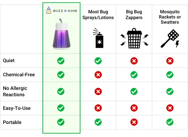 zappers that sound like a lightning clap every time a mosquito gets in? BuzzBGoneworks quietly in the background, making it perfect for bedrooms, offices,