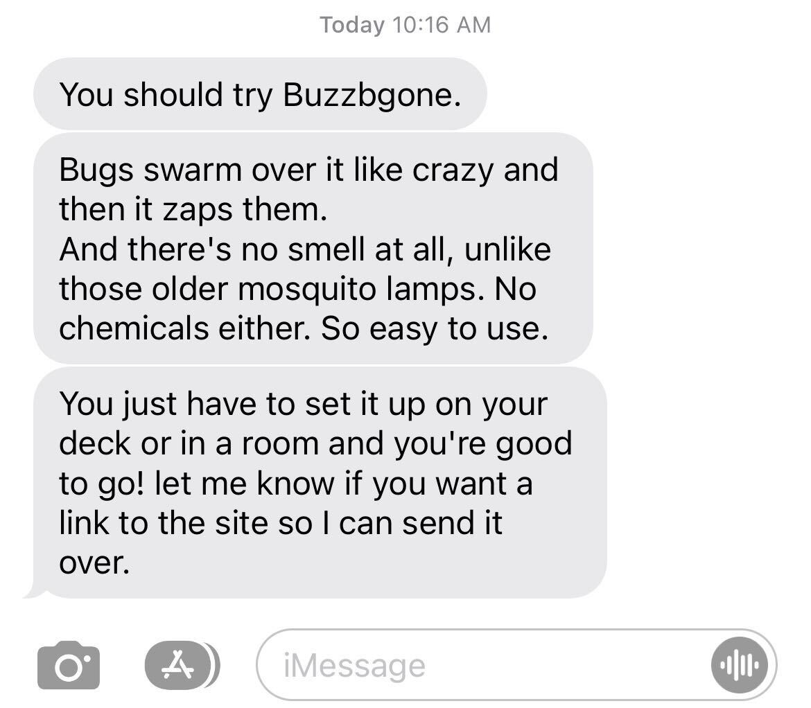 "Just recently bought this BUZZBGONE zapper after reading all the